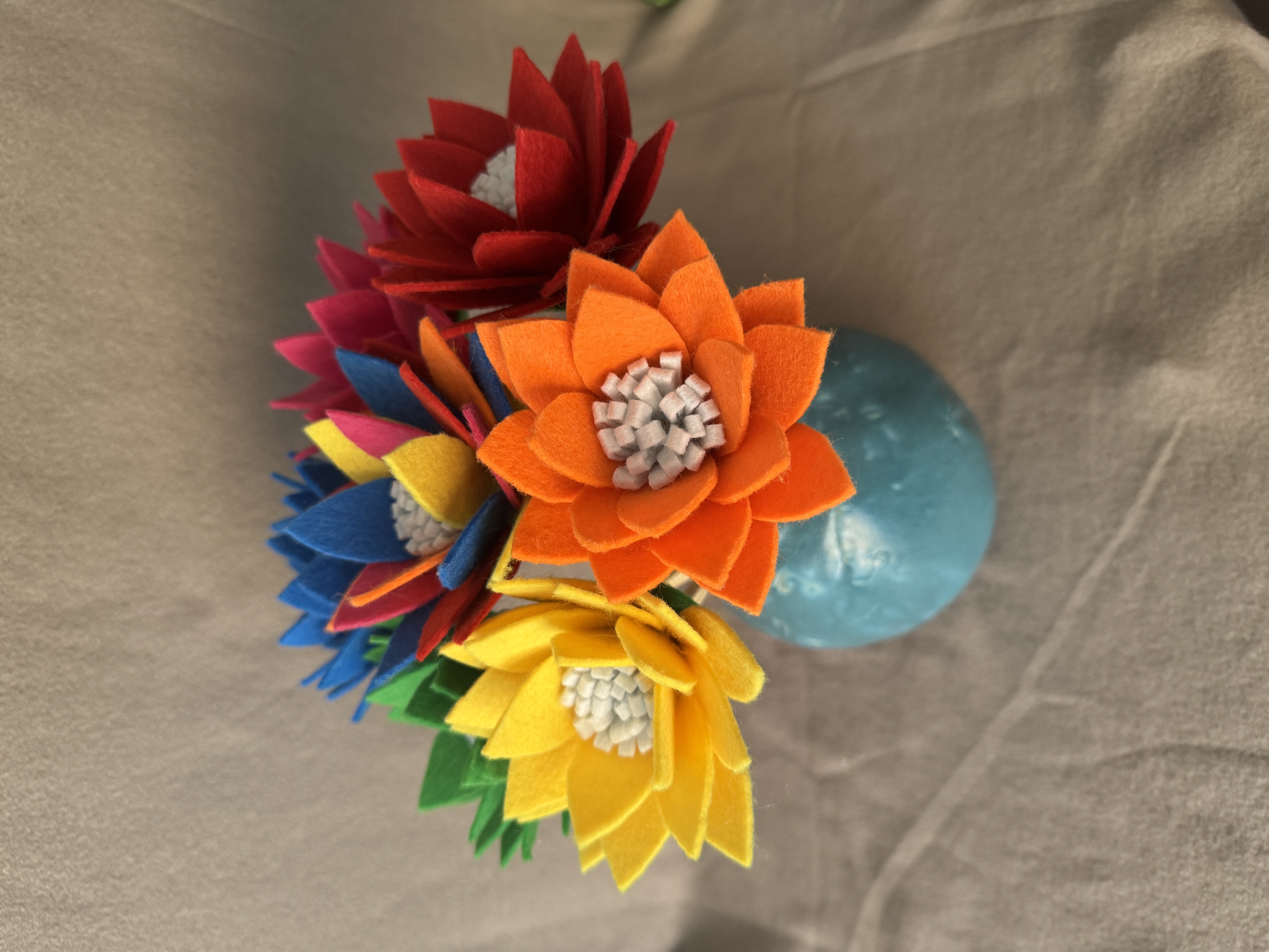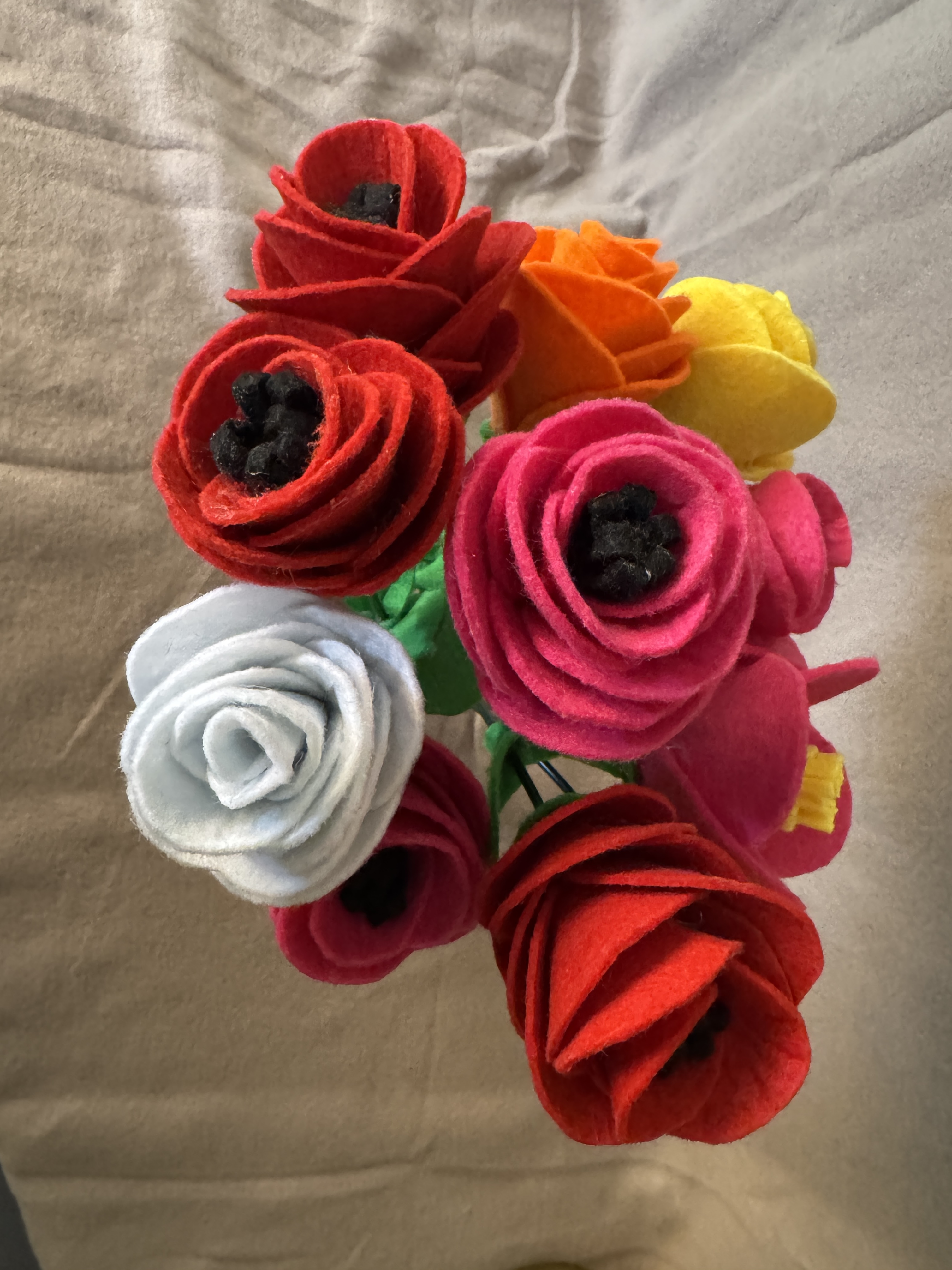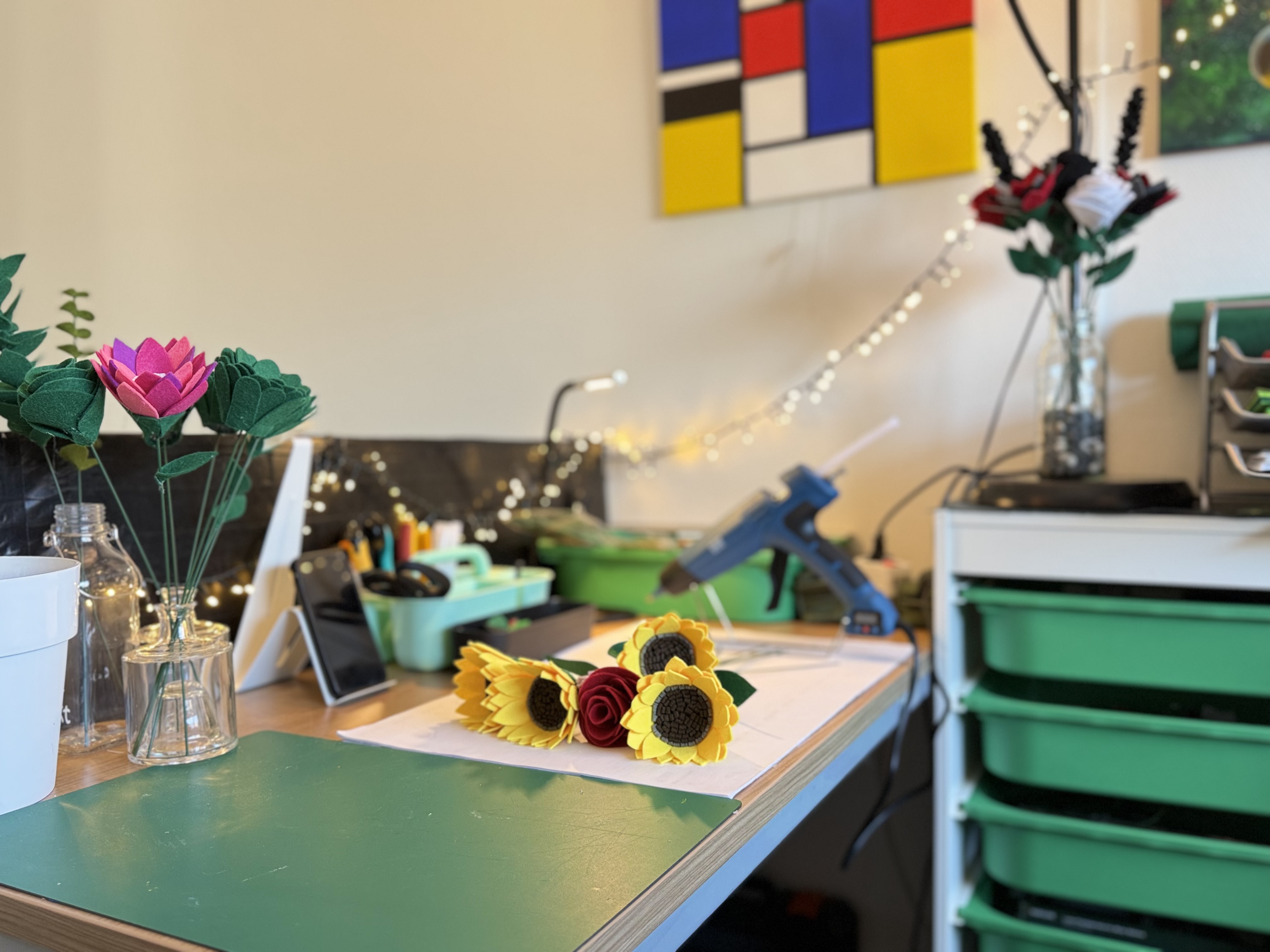 Ik maak graag viltbloemen in mijn vrije tijd.